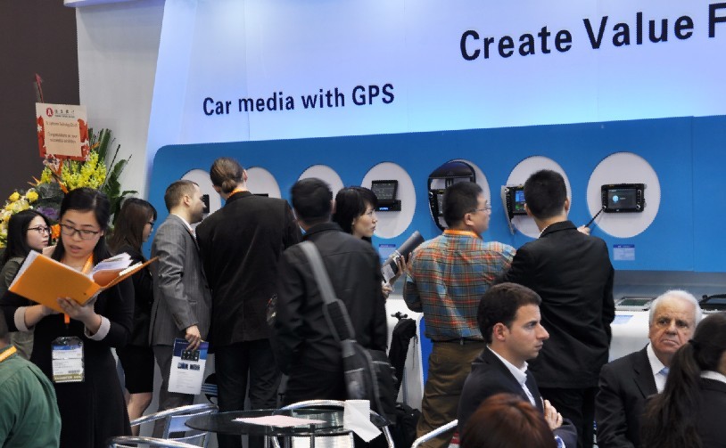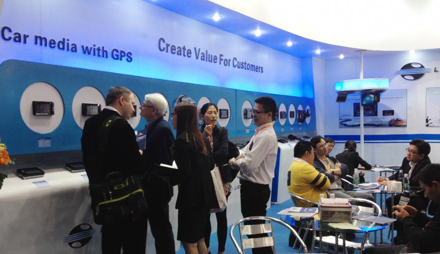 首先,在产品上,恒晨充分展示出了自己强大的研发与制造实力,集中展示了4款通用机、20余款专车专用机以及3款吸顶机产品。其中,采用A5平台的通用机型,功能齐全,价格适中,桌面背景多款,引起了来自伊朗、波兰、土耳其等国家的客户的极大兴趣;雪佛兰、大众、本田、丰田、日产、标志、三菱、铃木、现代、马自达、斯柯达、福特等20余款专车专用机,款式多样,功能丰富,受到了众多海外客户的高度评价;A6 平台、Android平台等机型,拥有OBD、Mirror Link、3G 、Wifi、3D导航等功能,也赢得了客户的肯定。